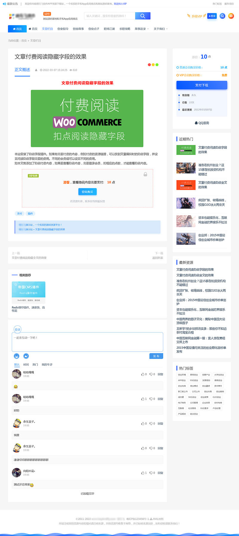 2、安装了付费查看隐藏字段和隐藏文章插件,可以在后台设置不同的会员级别的权限,或下载币支付。