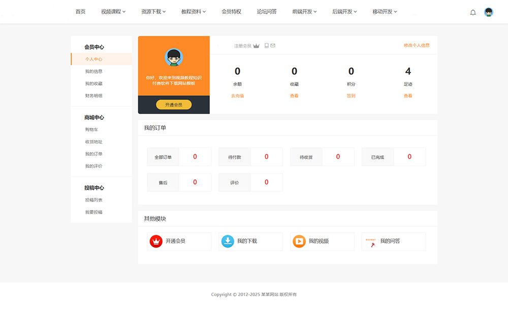 - 会员中心仅对单个付费购买的视频显示订单和播放记录。