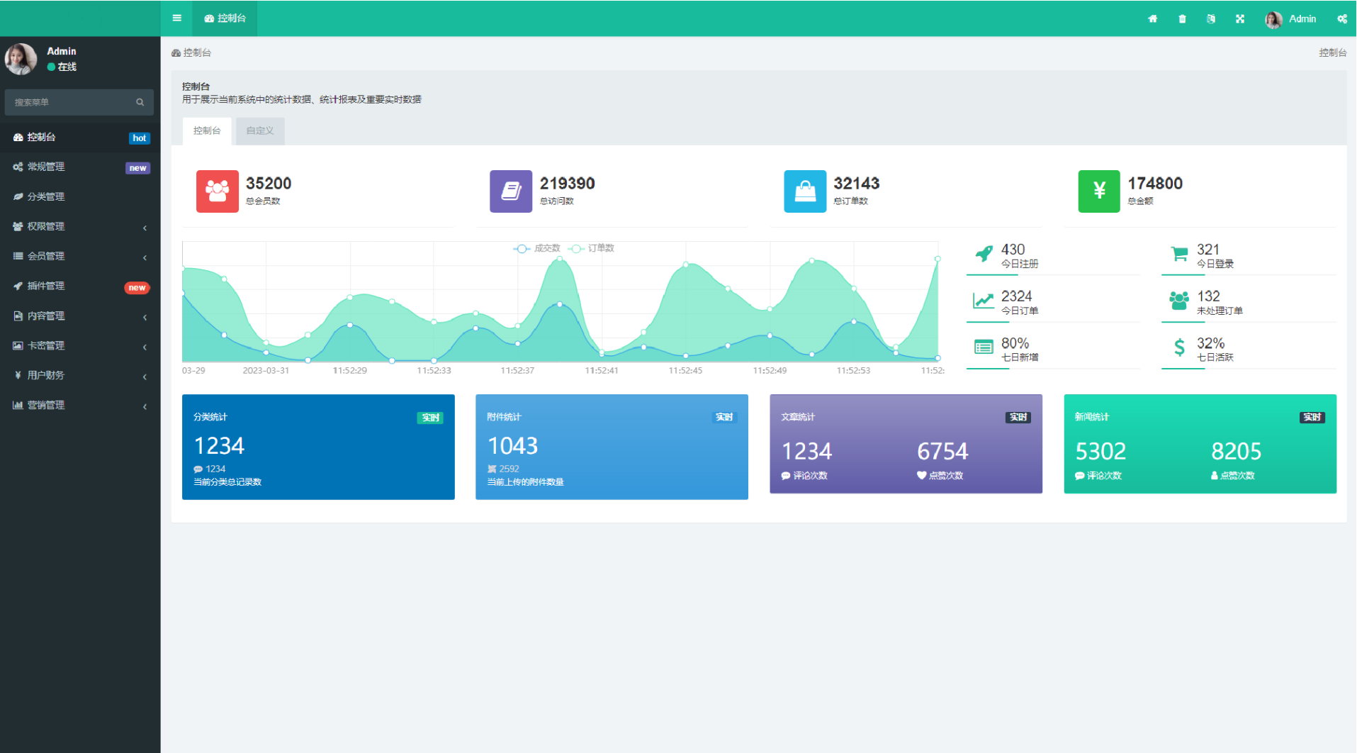 6. 强大后台管理:提供数据大屏展示,实时监控平台情况,为运营和营销提供数据支持。